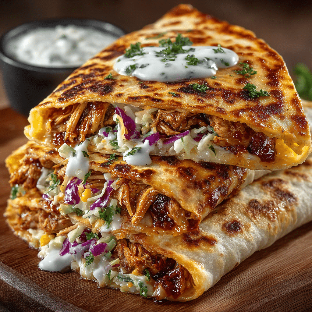 You can add extra richness by melting a slice of cheddar cheese or gouda on the chicken before wrapping. For a spicy kick, add diced jalapeños to the slaw. Pulled pork is a natural substitute for the chicken if you have leftovers.